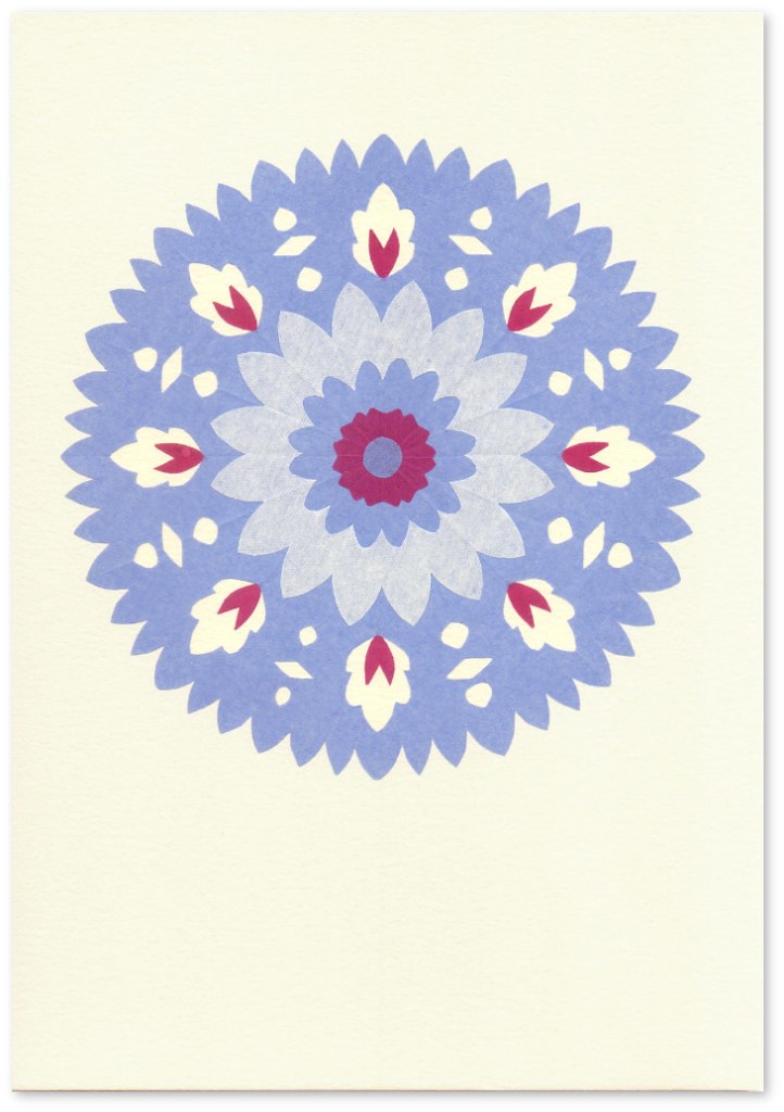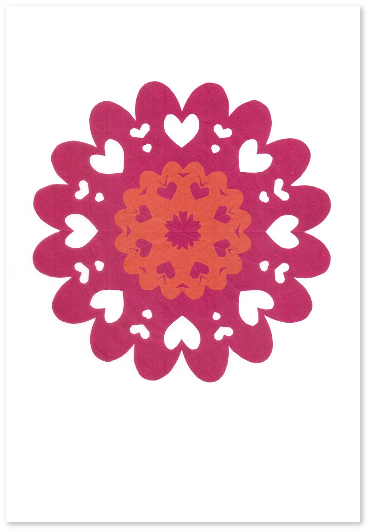 Paper Cut-Outs paper cut-outs mounted on 220g paper background paper size: 21 x 14.5cm backgroud paper: white (Magenta), cream (Blue, Orange) 2024 £10 each