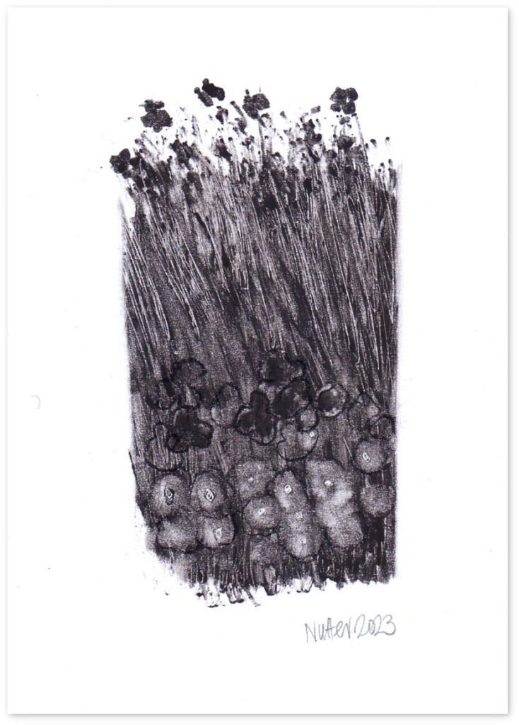 Study 3/2023 monotype finished with crayon hand-printed size: 14,8 x 10,5 cm image size: 11 x 6 cm paper 120g / white / acid-free 2023 £ 5