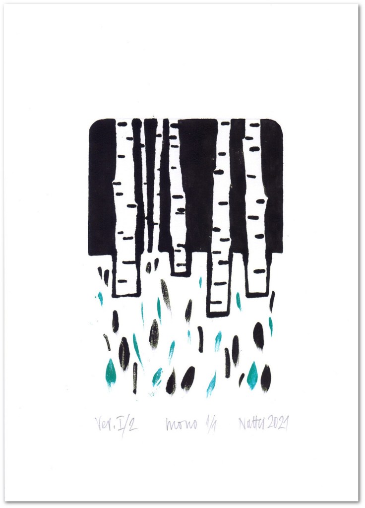 Trees II Ver. I/2 monotype with gouache and water-based ink hand-printed size: 20,8 x 15 cm plate size: 12 x 8 cm paper 250g / white / acid-free 2021 £10